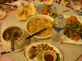 これこれ、おいたはいけません。あいては人形です。 犯罪ではありません。 などのスポットを見て回る。清心飲食店で昼食。 4人で1人前を味見しただけ。 チャーハンや麺類はとてもいい味だった。 米はユメピリカやフックリンコなどの美味道産米に慣れている身には少し物足りないものの、タイ米などのような長い米ではなく、もちもち感のある日本米と同じ品種で、ハワイで食べるまずい米よりはずっとまし。