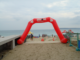 ◆◆◆ スイム編 ◆◆◆ 2016/10/2 日曜日 3:30 モーニングコールで目覚める。 すぐにバイクショーツを着込んで身支度。 ストリートバック、バイクバック、ヘルメットを持って、ロビーへ。 朝食はホテルで用意する予定であったが間に合わず。 大急ぎでコンビニで買い集めたパンなどが積んであった。 それならこちらも別の準備をしていたのに。 と恨み言が口に出そうになるが、 朝食を用意しようとした心意気だけでも感謝しよう。 ジャパンではどのホテルも朝食を用意してくれなかった。 日本では最初からその気がない。 それよりましだ。 ここは契約や約束で縛るのではなく、自発的な善意が優先する土地柄。 古き良き時代の日本の良さを残しています。 部屋に戻り湯を沸かし、レトルトカレーとパンを詰め込む。 4:30 予約していたタクシーが来る。 315元。早朝を無理言ってきてもらったので倍払うと申し出るも受け取らず。 こういった処は台湾の人たちは誇り高い。 チップも受け取らない。 押し込むように500元を渡す。謝謝と感謝される。 昨日の協議説明会で水温24.3度ということで、ウェットスーツOKになった。 涼しそうな袖なしのウェットスーツを着る。 バイクジャージの肩と袖が外にはみ出ている。 エイジのスイムスタートはスイムが早いと思う人の順に5秒おきに8人くらいずつウェーブスタート。 スタートマットを踏んだところで計時が始まる。後ろに並んでもタイムロスなし。 これはいいシステムだ。自分の番がくる。 スタート。 バイクジャージの袖が擦れる。肩のところで水の抵抗が増える。 濡れた袖が腕の回転を妨げる。 トランジッションタイムを節約しようと思ったがそれ以上のタイムロスがありそう。失敗した。完全はありえない。 致命的ではない数多くの小さいミスを克服するのもアイアンマンレース。 事態を受け入れ、気持ちまで折れないよう鼓舞する。 脇が擦り剥けて痛いのを我慢しつつ泳ぐ。 スタート時の大バトルがない代わりに、いくら進んでも周りに必ず4-5人くらいは居る。 小さなバトルがずっと続く。平泳ぎが多く、お腹を蹴飛ばされないよう気を付けて泳ぐ。 周りの人たちは後ろに付いてドラフティングしようと思うほどいい泳ぎはしていない。 同格か格下。もう少し前に並べばよかった。 自力で泳ぐ。 波は少しあるがストレスになるほどではない。 潮の流れも少し。 1週で丘に上がり計時マットを回って再び海に入る。 ケコちゃんが応援してくれる。 ワセリンを擦り剥けた脇に塗ろうと思い、医療エイドでワセリンと叫ぶが通じない。 油(ヨウ)というと、オリーブオイルのようなものを手に垂らしてくれた。 中国語では固形の脂ジと油ヨウは区別していたことを思い出すがもう遅い。 脇に塗り込む。少し楽になる。ヨウでも役に立った。 手に油が付いたままだと、手のひらから水が逃げてタイムロスすると聞いたことがある。 砂を拾ってゴシゴシとこすりなるべく油を落として再び入水。 2週目。 周りに人が絶えないが、折り合いをつけ淡々と泳ぐ。 位置の入れ替わりはほとんどなくなる。 逆潮と思われるところも、ブイロープが気持ちよく後ろに流れるのが見える。 悪くないタイムで上がれそう。 着込みミスがなければ自己ベストを出せただろう。 やがて最後のブイを曲がり底の砂が見えてくる。 横では立ち上がろうとしているがまだまだ。 手が砂につくまでは泳ぐ。手が砂につく。 このときのホッとする気持ちは何度出ても格別なもの。 砂浜を上がる。 大きな桶があり、水をかけてくれる。 ウェットスーツを脱いで、バイクウェアの塩を落とす。 バイクショーツの腰を引っ張り伸ばし股に水をかけてもらう。 女性のボランティアだったが嫌がらないでやってくれた。謝謝。 決してセクハラではありません。 股の塩を抜いておかないと、股ずれを起こしたとき因幡の白兎状態になりひどい目にあうのです。 分かってくれてありがとう。 ちなみにセントレアはスイムから上がったときシャワーも洗うところも一切ない。 ハーフなら因幡の白兎も何とか我慢できる。 フルなら相当の苦痛になり、リタイアの原因にもなりかねない。 バイクバックを取って走る。 バイクラックに着く。 靴を履いて、ヘルメットをかぶり、サングラスをかける。 ロングなのでバイク手袋もつける。 ウェットスーツをバッグに収めて所定のところに置く。 スタートラインまで自転車を押していく。 さあスタート。 スイムタイム 西口明子 1:23:16 中西新一 1:25:45 槇本 深 1:34:53 槇本美恵子 1:53:47