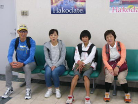 出発前。函館空港ロビー。杉村さん夫妻。タマ、ケコちゃん