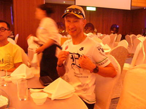 バイクチェックイン、レース当日のタクシー移動の手配も、日本語が堪能で明るく可愛いフロントの美人がぬかりなくやってもらえ、 夕食のビュッフェで寿司などの和食もあり、慣れない異国の料理に疲れた胃腸を癒してたらふく食べることができました。 日程を縮めて節約する代わりに一流ホテルにしてみたのは正解でした。完走につながるメリットの一つでした。