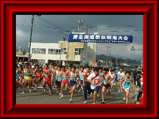| 昨年の福島駅伝、今年の大沼駅伝と人数が集まらず、残念な思いをしていたので、何とか今回こそチームを組んで・・・と思っていました。 すなおちゃんが参加OKということで、あと二人・・・ひとみさんと、うちの同僚、大澤さんになんとかいい返事をいただいて、函トラ女子チーム結成! そして大会当日。いつもは、けこちゃんはじめ、みなさまに世話を焼かせてばかりの私。でも高校時代陸上部だったとはいえ、駅伝に巻き込んでしまった大澤さんを気遣わなければ!という思いから、なれぬ行動をとり、よりいっそうけこちゃんに気を遣ってもらう羽目に・・・ 女子の参加チームは、8チーム。例年になく多くて、大学生が2チーム、走ろう会も2チーム。 3位入賞は難しいかな?と思いつつ、チームが組めずに、応援だけだったことを考えれば、参加できるだけでも大満足。 例年になく好天にも恵まれ、(最高気温20.7度)スタート前にランパンTシャツでも寒くない!4区間男子のスタートを見送り、ちょっとUP。 6区間男子もスタートし、いよいよ女子。 スタートラインに立つと、やっぱりドキドキ。まわりの大学生のシューズを見ると、すごく速そうでもない・・・がんばれば、区間賞とれるかな?などと、ちょっと欲がでた。 1分前・・・30秒前・・・20秒前・・・・・・スタート。 元気の良い小・中学生が、飛び出す。欲に駆られて、ハイペース集団について行く、高校生、中学生が軽やかに遠ざかっていく。 ほそっこい小・中学生に遅れまいとがんばっては見たものの、海岸線でだんだん離されていく。 折り返して、一般では1位のようだ。半分くらい来たところで、足が重くなってきた。はじめにがんばりすぎて、いっきに乳酸がたまったのかな?と考えたが、足を止めるわけにはいかない。 橋を渡り、商店街に入り、カーブを曲がるとあとは、最後の上り坂。たすきをはずし、見上げると、ひとみさんだ!2〜3歩こっちに近寄ってきてくれないかなぁ〜くるしいよ〜〜(もちろん心の叫び)たすきを無事わたす。 ゼーゼーと息はなかなか戻らないものの、自分の役目を終えてほっと一安心。 大澤さんに、自分が前半とばして辛かったので、前半はおさえていくようにアドバイス。すなおちゃんが来るのをまつ。 6区男子の前田さんや丹羽先生と話しているうちに、恵庭南高が来る。はやー。もうそろそろ・・・ すなおちゃんが1位だ!でもすぐ後ろに教育大。そのちょっと後ろにも・・・アンカー勝負だ!たすきが渡されるのをみて、いそいでゴールへ。 近くにいた高谷さんに教育大といい勝負だったと報告しているうちに、「あっ大澤さんだぁ〜」すごいすごい!!興奮して、いっしょに走った。 後ろは見えない。1位!1位だよ〜国道をおれて、ゴールまでの直線、いっきにスパートをかけ見事に優勝!!やった〜 レース後成績を見ると、助っ人ひとみさんは、区間3位、すなおちゃんも2位、そして大澤さんは、見事に区間賞!表彰式では、体育館の照明がショートし、炎と煙が・ ・・火事!?避難?あわてたものの、電気を消すとおさまり、しかしながら、少々煙たい中での閉会式となりました。 会場の向かいが消防で、消防車が出動しかけたけど、バックで戻っていったとか・・・そんなハプニングもありましたが、めでたく2年ぶりに優勝カップをもらうことができました。 |