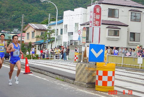 奥尻島走友会の松田さん、さすが力強い走りです。