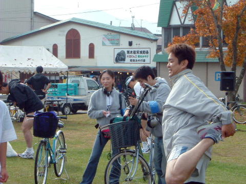 ママチャリで実況中継か?