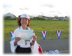 | 2003年、3回目のオロロン。無難に行けば、完走する自信はある。でも新しいバイク、自分の力を試したい。 つぶれても・・・そんな気持ちの挑戦だった。 私としては、西暦の1桁とオロロンの参加回数が増えていく予定なので、長い年月、つぶれた年もあったよなぁ〜と思い出してもいい、タニさんのアドバイスに従ってはじめからガンガンとばすぞーと思っていた・・・ 〜SWIM〜 やっぱり今年も、立っていたこのスタート。 ![]() 1時間足らずで、バイクの最終確認、トランジットの準備、補給食の確認、荷物の預託等々、あわただしく、うでにナンバーを書き込んでもらい、いっぱしのトライアスリートの気分を味わうまもなく、スイムのチェックイン。 試泳を終えるとあとの30分はただスタートを待つのみ。 なぜかオロロンはおぼれる気がしない。(昨年は平取でスイムリタイヤだったので・・・スイムは苦手)地元ブラスバンドの演奏に拍手を送りつつ1分前。 えっ!もうスタート?やっぱり立ってたかぁ〜今日1日楽しもう!スタートラインに立っている自分にまずはエールを送る。 今年は、集団の中に入り、たたかれながらも泳ぐ。その甲斐あってか、スイムからあがると38分台。去年より3分も速い!目の前には高谷会長!シャワーも浴びずトランジット。なかなかウエアーの背中がおりてこない。 湯上がり状態?みかねた近くのお兄ちゃんが下げてくれて・・・(これって反則?)バイクスタート 〜BIKE〜 何かまわりの雰囲気が違う。まわりのバイクが速い。 マーシャルがいる。谷さんの「はじめから、とばしていけ!」のアドバイスが脳をかけめぐる。足の回転を気にしつつ空の青さと海の青さに感動。記憶に刻まれる1日になるに違いない。 昨日、車を置きに羽幌まで走り、イメージトレーニングをしたコースが、早回しですぎていく。30キロ、高谷さんが見えた。ついて行けばいいところは行く。でもより高い自分を求め、高谷さんを抜く。抜いたからには、もう引けない。 谷さんの「小平の直線は、心地よい回転数で、回すんだ」の声が聞こえる。 追い風ならアウターで4枚目と決めていた。やや東の風で1枚軽くする。でも平均時速35キロはでている。ほぼイメージ通り。 苫前に入り、やや坂が出てくる。「ヒロコちゃーん」耳慣れたケイコちゃんの応援に思わず、「あたし、がんばってるよ!」と答えた。石やんの車が遠慮がちに過ぎ去った。 もうすぐ今日のゴールの羽幌だ。今夜の宿泊ホテルが見えた。といってもあとバイク約130キロ、ランの全てが残っているが。 「ナンバー6」優待選手の服部さんだ。下りで簡単にこしてしまった。どうしたのかと一瞬、思いつつもそれ以上考えることもできず、ただ自分の精一杯に挑んでいた。 頭は、あまり働いていないが、一応は、小学校の教員なので、子どもたちの応援には手を振って応えるようにしている。 後方から子どもの声、手を振ると、7月に札幌に来た姪っ子(姉一家)の乗った車がコマ送りで右を過ぎ去る。思いがけない応援にジンとくる。 あのウエアーは・・・!棟方さんだ!横に並ぶと、谷さんもシンちゃんもまだ来てないと言う。予想以上に好位置らしい。 棟方さんを抜くが、すぐに抜き返される。このあたりから、力がでない。「いいきになって、とばしすぎたなぁ〜」と反省しつつ、足を回した。 それでもなんとかサロベツ原野を抜け幌延の役場前を通過。風が変わる。 前半のとばしすぎがたたっているのに、さらに風、失速してどんどん抜かれる。こうなると、さっきまでの前向きな自分は、もういない。 「あーやめたい」 とりあえず足を動かす。「やめたい」「やすみたい」「おしりが痛い」さまざまなマイナスイメージが頭をうごめき、女子3人に抜かれる。 女子6位。さっきまでは、3位だったので・・・。見知らぬ車も「加藤さん女子3位、4位の○○さんとは、○分差」などと教えてくれる。 さっきまではうれしい情報も抜かれるたびに辛くなる。でもリタイヤは絶対しない。あきらめない。このことを昨年の平取で誓ったので、「やめたい」わたしを「あきらめるな」のわたしが励ました。 ゴールを刻む標識が見え始めた。バイクで、抜きつ抜かれつした選手にあいさつをし、遠別道の駅に滑り込む。トランジットバックを受け取り、更衣室へ女子選手が2人。和やかに話をしている。 必要最低限の着替えをし、補給食を手にランスタート。 ![]() 〜RUN〜 姉一家、マッキーさん、島津さんの声援を次々うけランへ。これで女子4位。 はじめは、キロ5分30秒ほどで入ることができた。5キロ?のエイド前で、歩いている棟方さんを発見。「今日はもう歩いていく」とのこと。「棟方さん。がんばれ!」の言葉だけ残し、追い越す。 好位置なせいか、前の選手との差が大きく、なかなかつまらない。太股に痛みを感じる。塩分不足?はじめて味わういやな感じ・・・顔をなで、きれいそうな部分の塩をなめる。 女子選手を発見、旭川の人だ。なんとかこせた。これで女子3