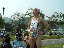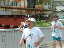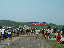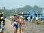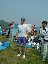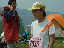 | 大会当日は晴れなのだが、何かスカッとしない天気 やはりシベリア火災のせいか? 朝方は涼しかったが、だんだんスタート時間が近づくにつれ気温 も上がってきている(これ以上上がらないで欲しいな) AM8:00車中泊をした駐車場から会場に向かうと、すでに数名の 仲間が話し込んでいた。ん?あれ我クラブの旗がない・・・ 高谷会長がめずらしく忘れたらしい、旗がないとなんか寂しいな。 9:40スタート予定なのでまだ時間的に余裕がある。Tシャツを 出してゼッケンをつけるが、隣で高谷会長が「あれ?ランシャツ着 ないのかい?」 そうなんです、最近はよほど熱い時期の大会じゃあない限り、 ショートスパッツとTシャツが僕のレースウェアです。 そろそろ、アップでもと妻と一緒にウォーミングアップ、途中でトイレ タイム。会場から外れるとトイレもスカスカ、待ちなしでした。これで いくらか軽くなったか?