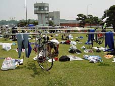 ![]() 大会には男子123名 女子8名 リレーの部に26チーム78名が参加 その他に今年から「親御さんのほうが熱くなる」KID'Sの部(S0.1kmB4kmR1km)20名 優勝は2時間12分35秒のタイムで柴田卓也選手 女子は去年のオロロンにも来ていた弘前の下山礼子選手が2時間50分35秒で優勝 コースは鯵ヶ沢漁港内の折り返し1周べたなぎ、100mごとの距離表示が親切1500m フローティングか岸からのスタートか役員同士でもめてるうちに「ドラ」の音が鳴ってスタート。 布施はドラとは聞いておらずカウントダウンも無く、ラッコ状態で腕時計をいじっていて後ろからバトルに巻き込まれる。 ![]() オロロンではこんなこと無かったんですが顔面蹴られる体殴られる。 お互いロスなのにね。 バトルを嫌って避けてたらコースロープ沿いに追いやられて以後、狭〜く泳ぐ そこから結構離れたトランジットエリアまで走って「ミニ白神」入り口までの往復激坂、こんなタイトコーナーの大会北海道にありましぇ〜んの40km。 噂の激坂は折り返し手前の4km。そこは交通規制してたみたいですがその他は係員はいるものの規制無し。 案の定カーブで膨らんで対向車に体当たりした人がいたようで肩の骨を折ったようでした(web東奥より) ![]() 布施は往路ですでにボトルのアミノバイタルウォーターほとんど飲み干し、折り返し地点のエイドで完全に停車してボランティアのかあさんに「ボトル満タン!」にしてもらう。 この水が冷え冷え!体にかけ、給水し脱水を防ぐことが出来たと思います。 復路激下りで中西さん、加藤さんとすれ違う時ビビリながら片手を離し「頑張ろう」の合図。復路の最高速度70kmナリ。 ランも平坦路最初と最後だけだべや!の10km おっ!前のにーちゃん歩いてる、でも後ろからリレーのフレッシュな選手が時折風のように抜いていく。 こりゃ、我慢比べだねと思っていたら柴田選手が下りをスススイ〜と軽やかに・・・。 見なかった事にしてすべてのエイド(5ヶ所)でかあさんと「今日は暑いね」トークを炸裂させてフィニッシュ ![]() 2時間39分44秒 10位でした。 話には聞いていたのですがホントにアップダウンが激しく久々にレース中に「来年ぜって〜出ねえ」と思わせるコースでした。 しかし来年は20回記念大会! 帰りのフェリーで「来年はリレーメンバーも組んで函トラでみんなでわいわい楽しくツアー組んでこようや」言う事になりましたのでアスリートメーリングリストの皆さん来年の7月最終日曜(?)は明けておいてくださいネ! |
