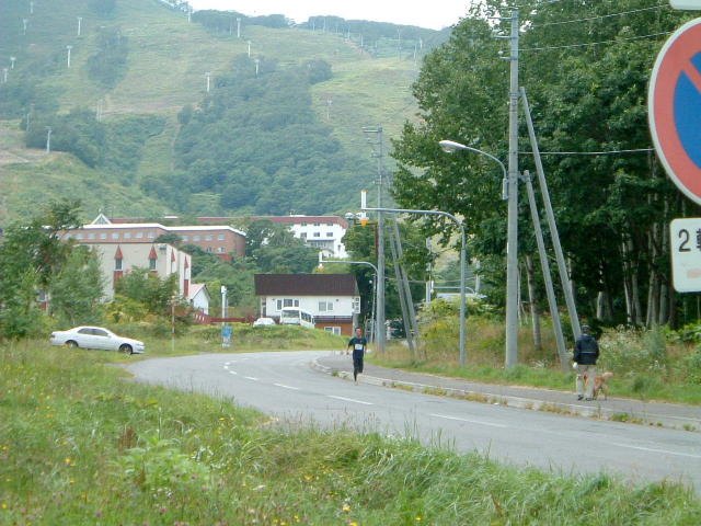 後ろにそびえ立つ、ひらふスキー場のゲレンデを