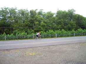 第50回記念大野〜江差チャレンジラン、初トライでした。今にも降りだしそうな空模様の中、約25名が時差スタート。 函トラチームは2分遅れの第2スタート、MAE、SHIN、HIROと3人で廻していく作戦、峠のトンネルまでの登り、HIROの息づかいが荒い、前日の練習疲れ、それとも飲みすぎ?それでも根性娘は3人の輪から外れることなくトンネルを通過、後はほとんど下りだから大丈夫。 江差手前で雨が降ってきた、前車の巻き上げる泥水が顔のもろにかかり、口の中がジャリジャリ、顔をそむけての走行はえらく疲れる。 鴎島折り返し地点のエードで補給と排尿を済ませ、復路のスタート。 3人の息もだいぶ合ってきて、順調に廻して行くが相変らずの前車の泥 水がいやだ!バンダナで覆面でもすればいいのなあ?それともフルカウリングのヘルメットとか・・・。そんなことを考えながら走ってるうちにもうトンネルの手前だ、終盤にきてこの坂は相変らずきつい!途中千切れそうなりながらも何とかクリア。 トンネルを抜けて、さあラストスパート、廻すタイミングを早めながら全力走、だが、このタイミングがわからず、何度も置かれて行かれそうになる、それとMAEちゃんのサドルバックが落ちそうになってて、ブラブラ状態、それも気になる。 残りわずか、両脚はパンパン状態、でもさらにスピードアップ、MAEちゃんの指示で前走者を一気に抜き去り、3人一緒に無事ゴール、タイムは3時間39分11秒でした。 マッキーズのふーさんは目標タイムを軽くクリアーの4時間9分9秒でゴールでした。 ![]() |