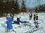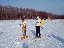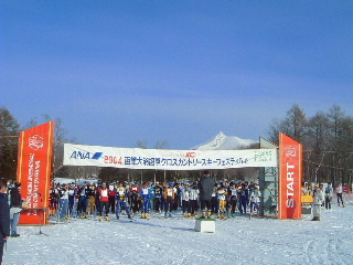 | この日はご覧のような真っ青な空の元にくっきりと駒ケ岳がそびえ立ち、「これぞ大沼!」っていう感じで、最高のロケーション。 クロカンキッズからはスキーハイクに2名、2時間タイムトライアルに17名が参加。参加メンバーは雪不足のため練習不足にもかかわらず好調の様子で、自己ベストが続出でした。 |