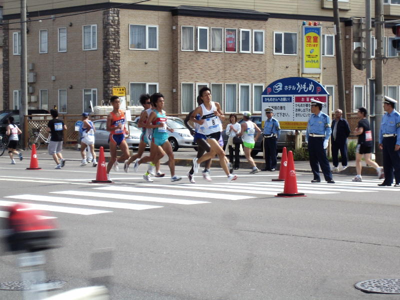 宇賀浦町交差点を右折し川沿いを走り、ゴールまで後3km弱
