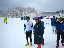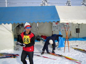 こんばんわ!(ヒロコです!)さん!夕暮れの産業道路、見知らぬ人々の繰る多くの車列の中、長く伸びた影をひきずりながらスキーを抱えた2人の横断。 別れの車でピリカでの互いの健闘を称え「今度貴女と会えるのはいつ?」と涙してから早くも1週間が過ぎてしまいました。 今はもう腫れたまぶたも癒えました。あの秋の日に後ろから受けたプレッシャー。いや、見えながらも徐々に離れて行く雪原の悔し涙を鼻で吸って口で出した苦い思い出。 何故か貴女の力強いやさしさがバイクやスキーの姿で前後に現れる。しかし、しかしです、今回は違った!視界に無かった。いや居られたのですがいつもと違ったポジションでした。「ワ〜〜〜イ!」なんてね。 参加の皆様お疲れ様でした。とってもハードな前夜(日帰り札幌の列車が遅れに遅れ午前2時30分着)自宅で眠りについたのは午前3時過ぎ。 ![]() 救われたのは、特急券の払い戻しと、この大会に誘いながら本人は出場が叶わなくなった丹羽先生が一緒で退屈しなかった事でしょうか。 午前6時10分起床。そりゃ無いよ!って気持ちで目を擦りながら集合場所へ。 相馬さんとなべチャンにテキパキと手伝ってもらって荷物を移し、なべちゃんの後部座席、哲学者の趣きを醸し出す塚谷さんの隣に座る。 そんな訳で失礼ながら早速ゆったりめの車の中で背中を伸ばし睡眠体制に。これが無かったら、自力だったら、きっと参加をパスしてたね。そして「目を開けるとそこは雪国でした」。 初めての「今金」最高でしたよ。スタート前に「ふれあい大会」を強調する挨拶に、思わず「だから触れ合おうよ!」と「ヒロコです!」氏に訳の解らない事を言ってるうちにスタート(もしかしたらこのせいで近くに現れなかったのかも・・・・)の合図。 とにかく「走りきる!」を目標に1周目は体力の確認とコース調べ。 直ぐにバラツキ置いてかれる。ワックスのせいにしたかったが無理があった。小柄な小学生が終始傍を滑る。平地で離され、坂道と向かい風で追いつく。 彼はほとんどストックを使わない。使えない?つまりほとんど「クロカンキッズ罰ゲーム」(ストック無し)状態。そのスケーティングの技術に恐れ入る。実況放送から察するに、どうも小学校の部1位を走ってるらしかった。 8の字コースのせいで多くの仲 間にも会える。大きく声を掛けられる。後方ポジションのくせに、こしゃくに「がんばれ!!」なんて答える私。そんな中、途中抜いたはずの渡波さんに追い越されれる。前からクロカンに入れ込んでた方ではないはずだし、髭のアスリートに追い越されるのは半田さんだけでたくさん、小さな希望と欠けたプライドを引っぱり出し「ガンバラねば!」と再度追い抜く、再再度の追いぬきを警戒するあまり一生懸命スキーを滑らす小心者。 これが功を奏して2週目ゴール近く、スタートゴールの広場が間も無くの地点で、歩くスキー集団の中に異質な滑りを1名発見。 同じ組では?もしや、もしやと更にペースを上げる。 同じ組と確信する。「う〜〜〜ん!厳しい!」しかし、間も無くゴールする広場には男性軍の仲間が何故か先に着いてる(ま!早いからと言う極めてシンプルな理由だが)。 右45度前方にその集団を素早く発見。左前方の1名も視界には大きくなってる。「行け〜〜!俺はこれでも大滝国際スキーマラソン15Km完走者なんだ〜〜!何しろ国際が付いてんだ!」と自らに言い聞かせ、ひたすら飛ばす!飛ばす! ゆるい下りも功をそうして、ぐんぐん近づく!ゴール間際で抜き去れば「ドラマティックだ!」「最高だ!」の予定・・・・だったが叶わず。いや、それどころかゴール直前の最終右カーブで転倒を押さえる為、必死にスキーをバタバタという不恰好なゴール。 ま!青春の恋愛の様に結局は届かなかったんですがね。 ![]() しかも、ゴール後間も無く身体中が酸素を要求するキツイ感覚が広がり、思わず雪面に身体を投げ出す。 しかし、坂口クロカンキッズ会長より「いい滑り」とのコメント。 皆さんにも「速かったわ!」等との賛美のコメントを頂くと、私はもう酸素無しのアルピニスト。「大丈夫だ〜〜い!」と有頂天。 改めてピリカをそして「今金」を大好きになったのでした。 我らの仲間の中では数少ないメダル、賞状も貰えないひとりでしたが、そんな一握りに選ばれた喜び?も含めて心から楽しんだのでした。 来年は確実入賞を狙って女装して出ようかな・・・・。と訳の解らぬ一瞬を夢見る皆川でした。 皆様お疲れ様!!来年も是非行くぞ!ヨロピク! |