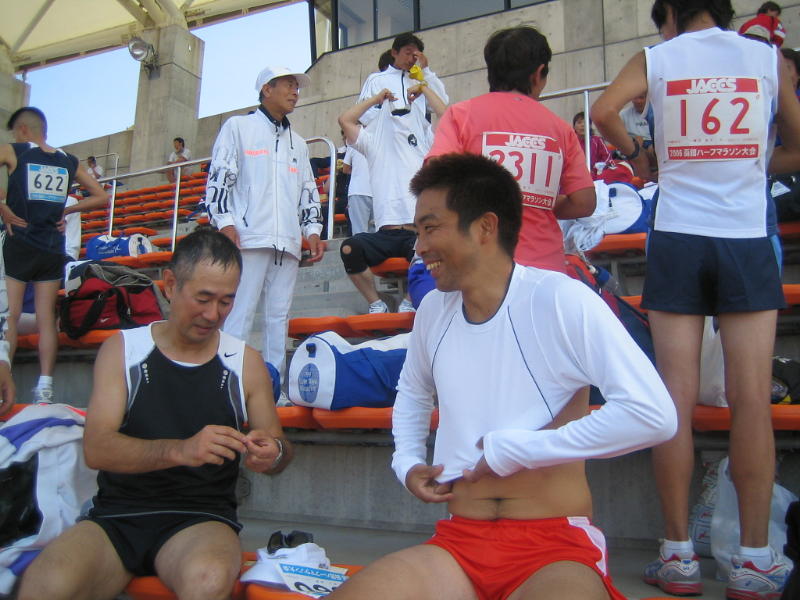 メインスタンドに戻り、着がえる選手達