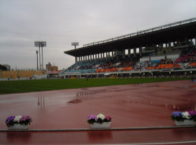 40キロ地点で、3時間をわずかに切っていた。3時間10分を切れる?ちょっと欲が出た。瑞穂競技場が見え始め、ゲートをくぐる。