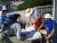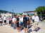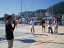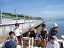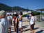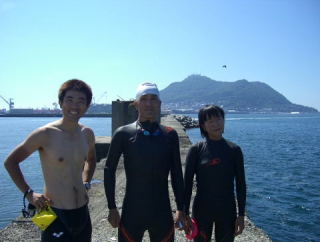 ![]() 函館湾内での遠泳体験教室に鯵ヶ沢トレーニングを兼ねて参加しました。 Bay Walk Community はこだての主催で初企画です。 8月になって、ようやく夏が来た!スカッと快晴、朝からジリジリして暑い。 もう十年以上も前になるかな、港祭りの企画で緑の島1周の遠泳があり、参加したことがある。 足に風船つけて集団でゆっくり泳ぐといったもので、距離も短いし、油臭くてあまり楽しくなかった記憶がある。 でも今回は船で西防波堤(通称赤堤)付近まで行って泳ぐので、なんか楽しそうで期待して参加しました。 参加人数は総勢15名、我がHTC(函トラ)から6名が参加した。 3班に分かれて船に乗り、現地まで約15分ほど。ちょっとしたクルージング気分を味わえた。 海から見る函館ドッ クの巨大クレーン、金森倉庫、シーポートプラザ等の景観はまた違った顔に見え、感動もの。防波堤に付いてその10m〜20m付近を堤防沿いに500m行って帰ってくる。折り返し地転にオレンジのブイが見える。 グループごとに伴泳者2名が付き。その人たちが先導する後を泳ぐ。 しかし、ついついレースモードになり先導者を追い越して泳いでしまった。 周りにヨットとシーカヤックがサポートととして付くので初心者でも安心して泳げる。 約1時間余りで全員完泳。とても楽しい遠泳だった。 |