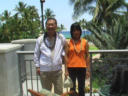 70.3とは70.3マイル、3種目ともロングの半分の距離にしたトライアスロンレース。 アイアンマンの組織下で行われ、10月の満月に一番近い土曜日に行われるアイアンマン世界選手権の正式な予戦の一つになっている。 プロたちはフルディスタンスの連戦で疲労が蓄積することを嫌い、予戦はハーフを選ぶのが主流になりつつあるとか このようなレースをアイアンマン70.3と呼ぶ。 今回のハワイのトライアスロンもそのような予戦の一つ。 この大会の常連である富田訓司さんに誘われて、参加することに決めたのが2006年年末のことでした。 もちろんハワイスロット(世界選手権出場権)などと大それたこととは無縁。 しかし、ありがたいことに制限時間が8時間30分もある。 ここ2年間オロロンで敗北、完走のゴールテープの感触をしばらく味わっていない。 どんなやさしいレースでも良い。ともかく完走すること。 そして、命の洗濯、遊びかたがたというより、アフターレースの観光に主眼を置いて出場を決めた。 マッキーもあれほど水泳を敬遠していたのだが、ハワイというエサにつられて参加を決めた。 我が家は何事も、出来る見込みがあるから参加する。では無く、参加申し込みをした、仕方なく練習をする。すべてはそこから始まる。 マッキーは年明けより大慌てで水泳入門。 黙々と水泳のトレーニングに励んだのでした。 完走の栄誉というレベルではなく、命が懸かっているというレベルであった。 ようやく2000m続けて泳げるようになったばかり。 海水はよく浮くから大丈夫、プールの倍の距離平気で泳げるからと励まして(騙して?!)、出発。 成田空港からおよそ8時間で、ハワイ島コナ空港へ到着。 時差は19時間。というより前の日の五時間後と考えるとわかりやすい。 コナは10月のアイアンマンのスタートとゴール。 今回はコナから45kmくらい北上したところにある マウナリゾートとハプナビーチが会場となる。 オロロンにたとえると、増毛羽幌間を省き、羽幌を、基点にして、北半分にコースとりをしたような感じ。 ハプナビーチでスイム。 広い見通しの良い白砂ビーチ。 溶岩が砕けた黒砂がこの島の本来の砂、昔にどこからか巨費をかけて白砂を運んできた人工のビーチ。 それでも自然の包容力と恵みで透き通る美しい海で、熱帯魚がよく見える。 勝負を忘れ、見入ってしまいそう。 バイクはあのアイアンマンハワイのコースの北半分を使う。 10月のアイアンマンハワイは、南半分は単調な溶岩台地を直線で進む。 北半分はアップダウンと、緑も濃くなり、比較的変化に富んだコース。 コナウインドも北半分です。 コースの単調な部分を省いて、面白い部分をいいとこ取りをした感じ。 ランはマウナラニリゾートをフルに使ったコース。 リゾートの高級ホテル、コンドミニアム、別荘、プライベートビーチ、ゴルフコースなどの中を縫うようにして走る。 普段ならゲストしか入れない場所を縦横に横断。 美しく変化に富んでいる。 勝負を度外視すると、退屈しない楽しいコース。 勝負にこだわる人には、ゴルフ場の芝やビーチの砂は足を重くする。 ゴルフ場には高さ3−4メートル、長さ50mくらいの、小さなアップダウンが多い。 変化があって楽しそう。 これも、勝負にこだわる人には重荷となる。 5月31日夜成田出発 5月31日昼ハワイ島コナに到着。 ホテルのチェックイン、レースの登録、バイクの組み立てなどをあわただしく行う。 ホテルはゴールのマウナラニリゾート内のフェアモントオーキッド。 準備が終わったらホテルのビーチでスイム練習。 マッキーはびびって沖に行かない。 何とかなだめすかして、50m先の岩礁まで泳がせる。 そうしているうちに、足の裏を切ってしまい、出血、練習中止となる。 とにかく深いところを泳いだのだから、あとはいくら沖に行こうと同じであることを説明、本番まで応急処置して、そっとしておくことにした 。 6月1日レース前日 バイクをスイムとバイクスタート地点のハプナビーチに運ぶ。 シャトルバスは人間の運搬だけで、バイクは自分で運ばなければならない。 約10マイル(約16km)。 溶岩台地の炎天下。雲ひとつ無く、容赦なく太陽が真上から照りつける。 まるでフライパンに乗せられたよう。 道路はあくまでまっすぐで、上下にうねっている。 だらだらのアップダウンの連続。 道路はずっと先まで見えて、逃げ水とかげろうが揺れている。 レースなら心構えも出来ており、何とかなるが、これは堪えた。 ただの自転車の運搬と思い、補給も無く軽装でいったのがまずい。 そして、あすこれを90kmも走るのかと思うと、気が重くなった。 この運搬はレースと同じ格好をして、補給もおなじく装備し、日焼け止めなどの防御処置も同じようにしておく必要があったと思った。 太陽に焼かれて、夜眠りを妨げる原因になった。 その後競技説明会など。 後は食事を取って、ひたすら眠るのみ。体が火照って眠れない。 明日のレースを考える。 ついて泳ぐか、自