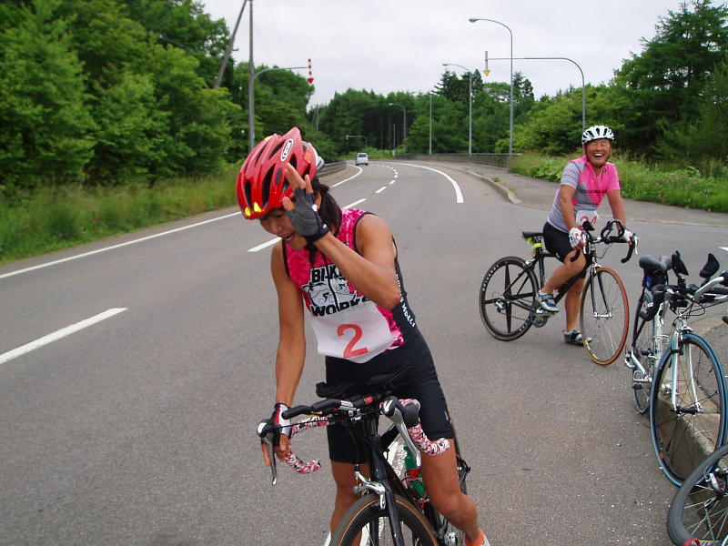 ハワイ帰りのマッキー、バイクとウエアがばっちり決まってる