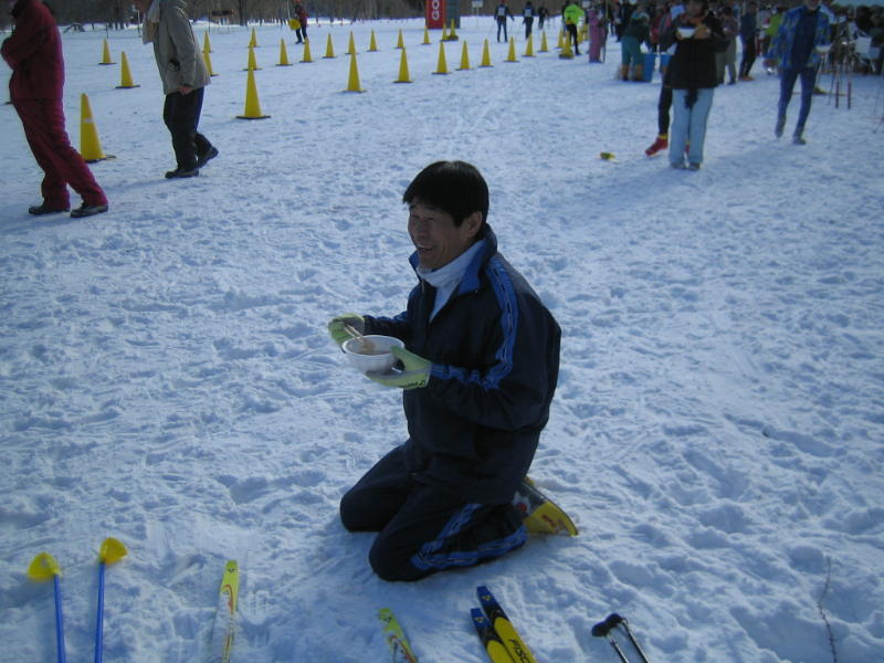:大会終了後、お楽しみの豚汁で身体を温めるソーマさん