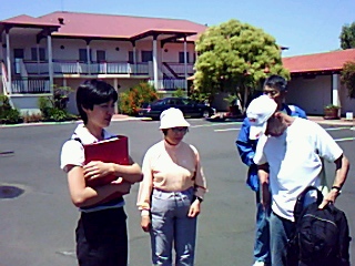 ガイドの千尋さんと、富田さん夫妻 ホテル中庭にて