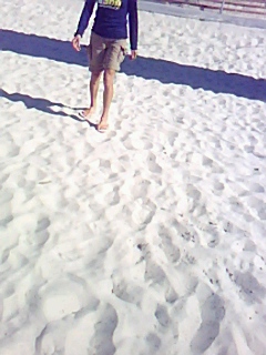 ビーチの白い砂 マッキーの真っ黒な脚とのコントラストが鮮やか。