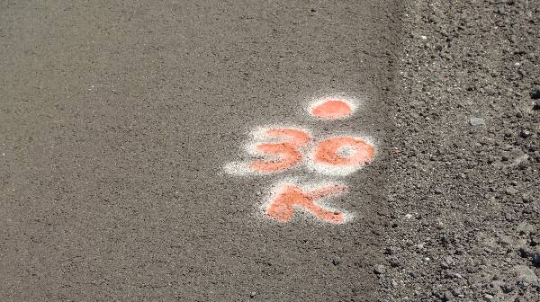 エナージラボ復路の上り坂の真ん中あたりが30km地点。