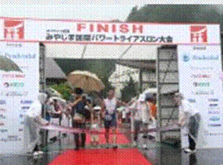 | 温かい応援に励まされ、やっとの思いで登り切り、森林公園で折り返す、今度は下りだが、これも辛い、 |