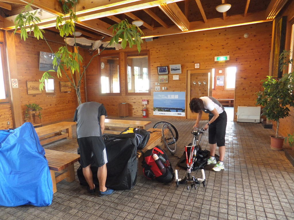 ここで、バイクを組み立て鯵ヶ沢に向けて自走します