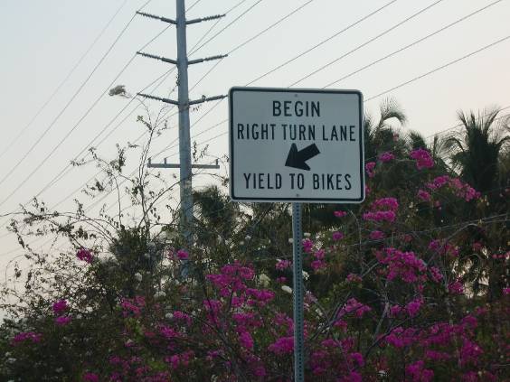 ONLYと書かれた車線は右折する車の専用レーンです。路肩を走り続けると、右折車と交差して危険。そのためバイクは折をみて、右折車線の左端に寄る。 あらかじめ左により、中央よりの自転車レーンにのる。交差点を越えたら、右折車がこないことを確認してから、路肩に戻る。最初は戸惑ったが、何とか馴れた。