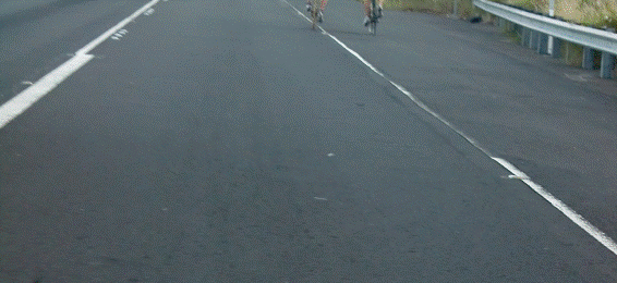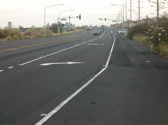 交差点を過ぎたら、左からの右折車がないことを確認して、路肩に移る。 明日の遠乗りに役立つだろう。 水泳の後、膝の痛みはほとんどなくなった。明日はハビ(ハワイ島北端の岬にある街)まで遠乗りをしよう。 夜は中華料理で決める。 コンビニで明日の朝食弁当を買う。明日は夜明けと同時に出発。ハビ迄、アイアンマンコースを走ってみよう。 10月11日(木曜日)。 今日はバイクコースの試走。 試合当日に備え、早寝早起きのリズムを作る。4時半ころ起きて、ゆっくりと腹ごしらえ。バイクの空気を入れたり、エイド食と飲み物の用意。パンク修理キットなどのツールも点検する。 7時夜明けとともに出発。アイアンマンのコースは10km足らずの東レッグと170kmの西北レッグがある。東レッグは省略して、アイアンマンの180kmへの距離あわせに、ハビより向こうに少しいってみるか、リゾートあたりで寄り道してみるか、その時の気分で決めることにする。帰りは16:00ころ、遅くて17:00頃と予告して出発。 薄暗い夜明けから、ハーバーあたりでようやく明るくなる。空港を通る頃、日が昇る。 一昨年引き返したフアラライリゾートあたりで日が照り始める。 広い路肩で、とても走りやすい。 ドライバーも親切で安心できる。 フアラライリゾートを越えて未知の領域に入る。 Causion Athlete In Training Bike yield road とか、バイクを保護する標識が頻繁に現れる。