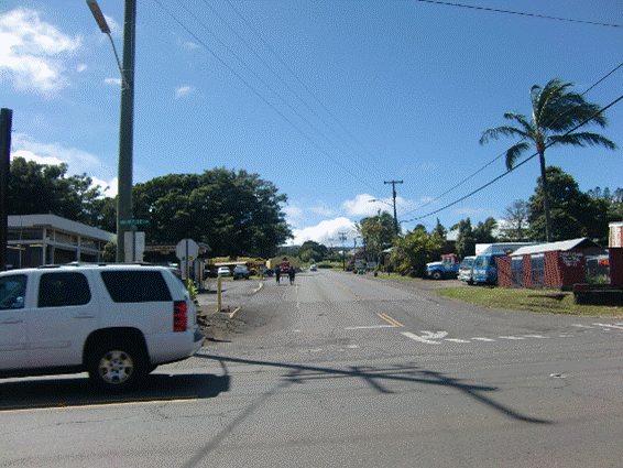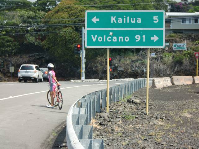 ケアホウから、カメハメハ3世通りを通って、19号線(ハワイベルト通りとも呼ぶ。クイーンKもその一部に含まれる)に到着。150mくらいのヒルクライム結構きつかった。左に行けば5マイルでコナに戻る。右に行けば、91マイルでボルケーノ、160マイルでヒロです。バイクでは気の遠くなるよう距離と標高差です。ハワイ島サイクリングをいろいろと計画してみたが、どこもとてつもない難所が多い。1週するには2−3泊する必要がある。アイアンマンのコースは一番無難な所を選んでいるともいえる。 ヒルクライムはさらに続き、標高400mくらいまで登って、 キャプテンクックという街まで行ってみた。