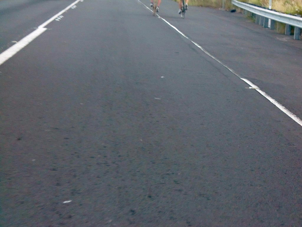 右側から、右折車がいないことを確認して、路肩レーンに戻る。