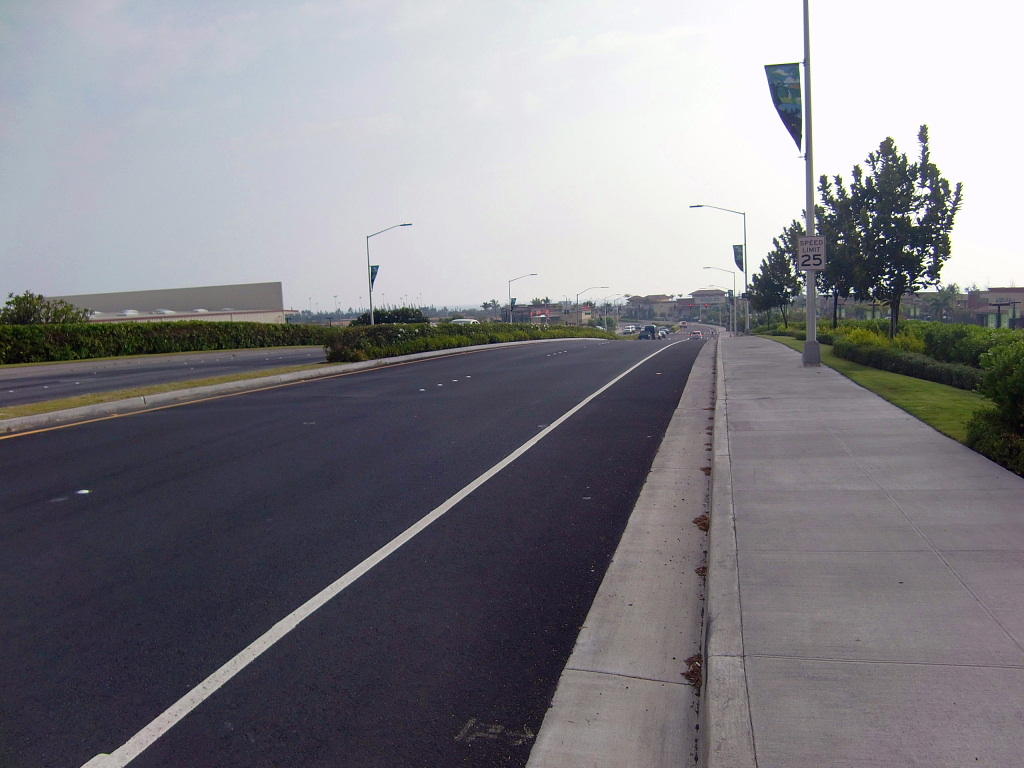 フアラライ通りに曲がる。下って、左折あとはゴールまでフラット。