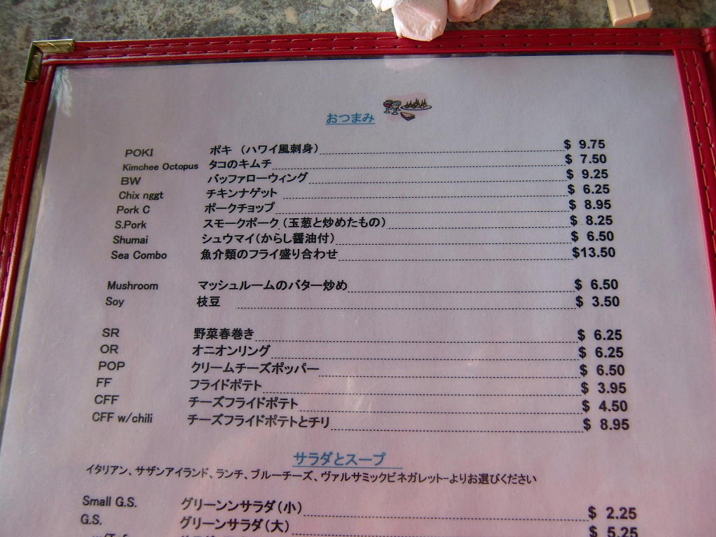 ハーバーの日本語メニュー