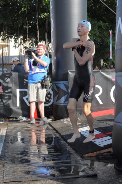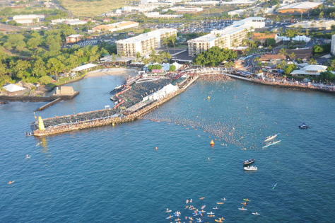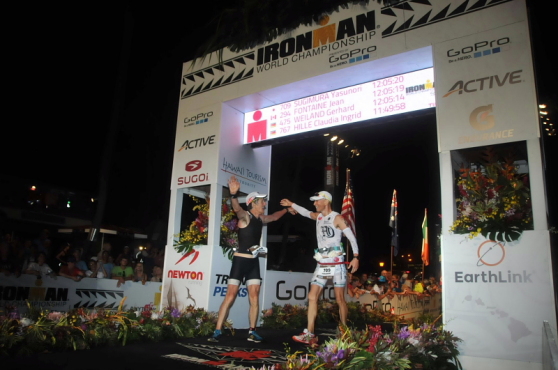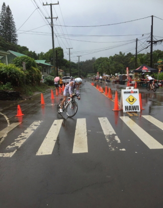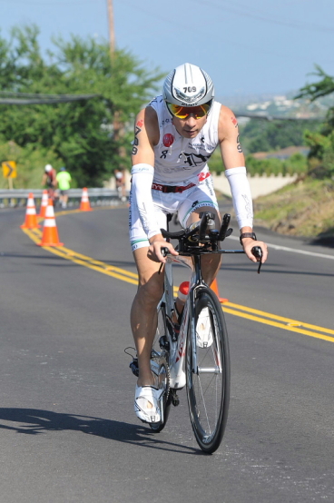 2015年10月10日 IRONMAN World Championship・Hawaii 今回が37回目を数えるこの大会。 今年は40の予選レースを7万人とも10万人とも言われる出場者の中、スロットを手にしたおよそ2300名の選手が、男子プロ、女子プロ、各エイジチャンピオンを目指し聖地ハワイ島コナに集結した。 Prologue 2006年 当時、日本最長と言われた日本海国際オロロントライアスロンのラストレースで無謀にもトライアスロンデビューした。 脱水の為、ヘロヘロでのゴールだった。 点滴してもらおうとヨロヨロと救護室へ向かう途中、 リレーの部で出ていたアダムと目が合った。 「お元気ですか?」 いつものセリフだ。 杉村 心の声 「元気じゃねーよ!」 (By 近藤春菜 ) 点滴が足りず羽幌町の病院まで救急車デビューまでしてしまった。 あれから10年。 IRONMAN World Championship 憧れのハワイ島・コナのビーチでスタートを待つ自分がいる。 アイアンマン・ハワイは自分の夢であり憧れであったが、決して目標では無かった。 なぜなら、同年代のハワイ常連選手の実力やトレーニングの量や内容を知るにつれ、軽く「IRONMAN World Championshipが目標です」とは言えなかった。 あまりにも高い壁だった。 ![]() 昨年のアイアンマン・ジャパン・北海道でマグレとマグレが重なった大マグレでスロットを獲得することができた。 逃した選手とは11時間弱のレースで僅かに1分30秒差だった。 レース直前、ある方からアドバイスを受け、シフトを電動化した。 それまではDHバーの先端に付けていたバーエンドコントロールなので、元来めんどくさがりの自分はあまりシフトチェンジしない方だったが、スムーズ&頻繁にシフトチェンジできるようになり、結果ランにも脚が残せた。 また、3週間前のショートのレースで、自分の確認不足でスイムアップの時、すでにタイヤがペチャンコになっていたこともあり、今回はそれを教訓に、スイムからランフィニッシュまで何度もイメージし、細かいことにもWチェックを徹底した。 すべてが良い方向に流れていった末の1分30秒先着だった気がする。 今後の人生でもう、ラッキーなことは残っていないかもしれない。 Swim スタート10分前、入水してゆっくりスタートラインへ。 最前列から10mほど後方へ位置取り、立ち泳ぎで待機する。 ルール上、ウェットスーツ禁止だが、海水の為、両手でのスカーリングやカエルのようなキックだけでも浮くことができた。 ![]() AM 6:55 文字通り号砲一発で男子エイジ一斉スタート 後方からのスタートなのと、先は長いのでショートのレースの様にダッシュしている選手は周囲にはほとんどいない。 多少バトルはあったが、200mほど行くとだいぶバラケタようだ。と、言うよりも、お互いマイナスになるので争わないという感じかな? 同じくらいのスピードの選手とパックで進む。 ヘッドアップもせず、コースもお任せで (^^ゞ 沖に行くにつれて右からのうねりが強くなり、呼吸のタイミングが悪い時、何度か ひっくり返りそうになった。 1600m地点に停泊している船を右に曲がる。ここで腕時計を見ると31分台だった。 自分としてはマズマズのタイムだったが、良かったのはここまでだった。 2、300m進み、さらに右に曲がり陸を目指す。 しばらくして今まで一緒に泳いでいたふたりがコースブイよりもずいぶん左にコースを取った。 スイムゴールのカイルア・コナ桟橋には7~8mもあるドリンク型のバルーンがあり遠くからでも何とか見えるのだが、この辺りはうねりも高く、周りも見えずらかったのでブイを見失ったと思い、仕方なく単独になった。(これが結果的に失敗だった) ![]() 知らず知らずのうちに流されて最短コースに入っていたのだろう。 15分遅れてスタートした女子エイジのトップグループが物凄い勢いで来た。 10人か20人かわからないが、たぶん、3800mを1時間切るくらいの“群れ”だ。 我がチーム内で例えれば、日下部コーチの“群れ”だ その日下部コーチの“群れ”に、 そう、襲われたという表現が一番近い。 頭から背中から全身はたかれ、モミクチャになった。 「あんた、ここにいるんじゃないわよ!」そんな声が聞こえてきそうだった。 今まで、平穏に「おぉ 海底にカメラマンがいるなぁ」とか、多少うねりがあって泳ぎずらいけれど泳ぎ切る自信もあったが、一気に余裕がなくなった。 ウェットスーツなしのバトルは厳しく、命からがら左にエスケープした。 その後も、またいつの間にか流され、1時間一桁の選手であろう、我がチームで例えれば、スイムお達者クラブの、飯塚、布施Jr,MAEさんの“群れ”に襲われた。 イワシの気持ちが少し分かった。 もうね。 スイムの速い人は嫌いです! ワールドチャンピオンシップの洗礼を受け、ヘロヘロでスイムアップ 3.8km 1:32:16 Bike およそ2,300台のバイクラックから自分のバイクを迷わず見つけられるのか心配していたが、まばらにしか無かったので危惧することはなかった。 (;一_一) バイクのメインコースはクイーンKハイウェイを北進してハワイ島の北端
