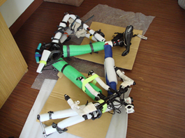 部屋でバイクを組み立てる。