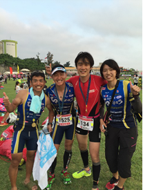 | 【はじめに】 今回で5回目の挑戦になりました。回数を重ねる毎に、慣れもあるのか緊張感、そしてワクワク感が薄れてきてしまっているのも事実かもしれません。 そろそろ一休みしようかなあとも思うようになってきていました。そのためか、特に宮古島のための練習はしていません。 健康維持のために毎朝出勤前に三本ローラーもしくはトレッドミルを行うのみで、土日も平日と同じような感じで、仕事、家庭に影響がでないように負荷もほどほどに、時間もかけないように、早朝練習のみを継続しました。あまり一生懸命練習していないので幸いに、練習がつらいこともなく、怪我も一切ありませんでした。 一番いかれた練習は、出張続きで、天気も荒れて、ホテルの部屋の中で一時間テレビを見ながら、ひたすら足踏みランをしたことでしょうか。 日々の生活に忙殺されながらも、特に頑張ることもなく健康のために練習だけは継続していたので、とりあえず完走はできそうかなといった感じで宮古島入りしました。 【レース前】 ![]() 南の島の天気は変わりやすく、天気予報はほとんど当たらないので、あまり気にしないでいましたが、4月15日の宮古島入りした日は肌寒くさすがにちょっと不安になりました。 この日は昼頃について、バイクの組み立てを行い、ワイドーパーティに向かいます。エキスポでレースに使うonのシューズやスポーツ羊羹と、マグオンのジェルを少し買って補給食としました。 そして恒例の“道産子会”に稲岡先生と一緒に参加し北海道からの参加者との交流を楽しみ一日目は終了になりました。 いつもハゲしく競う羅臼の横前さんと一緒に レースの前日は、いい天気でした。そういえば昨年も前日はいい天気で翌日に嵐。今回もそんな感じでしたが、せっかく宮古島に来たので、試泳だけでもと思って、きれいな海で泳ぎました。なんとも気持ちのいい海でした。 午後からは、妻がレンタカーで観光したいとのことで、伊良部大橋を渡って、伊良部島を回り、下地島というところまで行って来ました。 伊良部大橋というのは、コースではとてつもない鬼門で、風も強いし、アップダウンもあり昨年も風で冷や汗をかいた思い出のある場所です。 さらに噂ではその橋のつなぎ目の部分が滑りやすいとのことだったので確認もしました。 宮古島はレース前日に余裕があるので、この一日が一番楽しいひと時です。そんな一日もあっという間に終わり夜8時過ぎには布団に入りました。 【レース当日】 いよいよレースです。 4月17日朝は4時30分に起きて、ホテルでサンドイッチを作ってもらってスタート地点である東急リゾートに向かいました。 前日まで嵐になるという噂もあったのですが予想外に意外と落ち着いた天気で今年はスイムできそうだなといった感じでした。 スイム練習はあまりしていなかったので一時間ぐらいでゆっくり泳ぎきれればいいかなといった感じで臨みました。 【スイム】 レスリングの吉田選手の合図で一斉スタートです。 さすがにバトルはすごいですが、あまり一生懸命に泳ごうとはしないでいると意外と気にならないものです。 ガツガツ泳いでいる人が来たら道を譲って安全第一で巡行しました。 バタ足をほとんどしていないので足をつかまれることが多かったように思えます。 触れたり当たったりするぐらいならいいですが、やはりいかなる理由でもつかんで上に乗るのはいけないと思いました。 あまりにもひどい方もいたのでその場合は、バタ足をして振り切りました。足は推進力のためというよりは足をつかまれないようにするための防御手段になるなあと思いながら、時々魚も見えて、のんびりマイペースで泳ぎました。 スイムアップはほとんど予定通りでした。 少しシャワーを浴びてトランジットに向かいました。そうしたらスコールのような大雨になり風も強くなってきました。 【バイク】 今日は安全運転で行こうと、心に決めて、あまり焦らないでゆっくり走行しました。 スコールの中、鬼門の伊良部大橋も無事渡り切り、さらに直角カーブのある伊良部島内も走り切り、雨も上がって来ました。 あとは伊良部大橋を渡って宮古島に戻れば鬼門もクリアです。 安全運転を心がけて車間距離もとって、橋の上まで登って行って、橋のつなぎ目に差し掛かりました。 ここは注意だなと思いながらつなぎ目を越そうとした時です。 一瞬ですが、自転車がすべって真横になりました。まさかと思いました。転ぶわけないよな、意外と何とか持ち直すかなとか思いました・・・ダメでした。 濡れた路面でウオータースライダーのように、すごい勢いで滑っていきました。 これってやばいと思いましたが、どうすることもできずそのまま空を見ながら滑り続けて止まりました。 幸いに路肩付近で止まり、前後のバイクとも車間がとってあったので、単独事故で済みました。 ほんとうにほかの選手を巻き込まなくてよかったです。 今まで練習でも、レースで