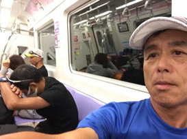 富田さんが見送りに来てくれました 中西さん(シンちゃん) 富田さん、杉村さん 奈良さん また帰り、レースが終わった後だから、公共機関も試してみようということで、地下鉄(MRT)に乗ってみました。 2回も乗り換えがあり、そのたびに階層の違うホームに何度もエレベータでバイクを運びながら移動。 混雑して同じ車両に乗れなくて分乗するするなど、とても疲れて、はぐれるリスクなどスリリングなことをさせてしまいました。 地下鉄は桃園空港から台北駅へのアクセスは便利。 しかし松山空港からのアクセスは乗り換えが多く不便です。 それくらいなら高速バスで一発で行ったほうがずっと楽。いろいろ勉強になりました。 疲れさせたり、ひやひやさせたりでごめんなさいね。