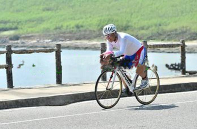 オーレンスシャツに日本兵帽子 市内を出ると坂がある。 去年は坂が終わった後、長いフラットなコースがあり、2周回で終わった。 今年は坂のあるところだけを選び3周回。 バイクもランも結構なアップダウンなのです。 澎湖(ポンフー)はサンゴ礁の島。山も川もない。 しかし、小さなアップダウンをしつこく繰り返す。 ちなみに